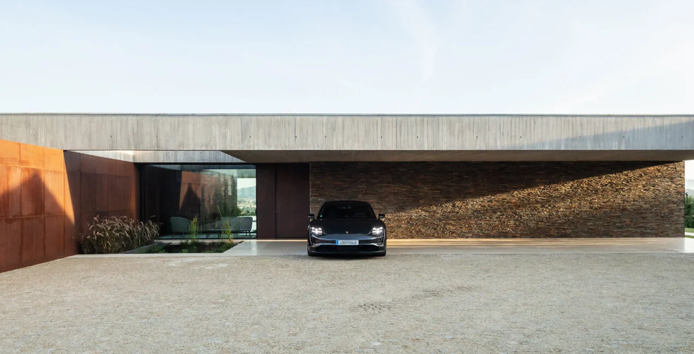 Ce studio a utilisé du béton, de la pierre, du bois et de l'acier résistant aux intempéries pour construire cette maison familiale de plain-pied dans le nord du Portugal.